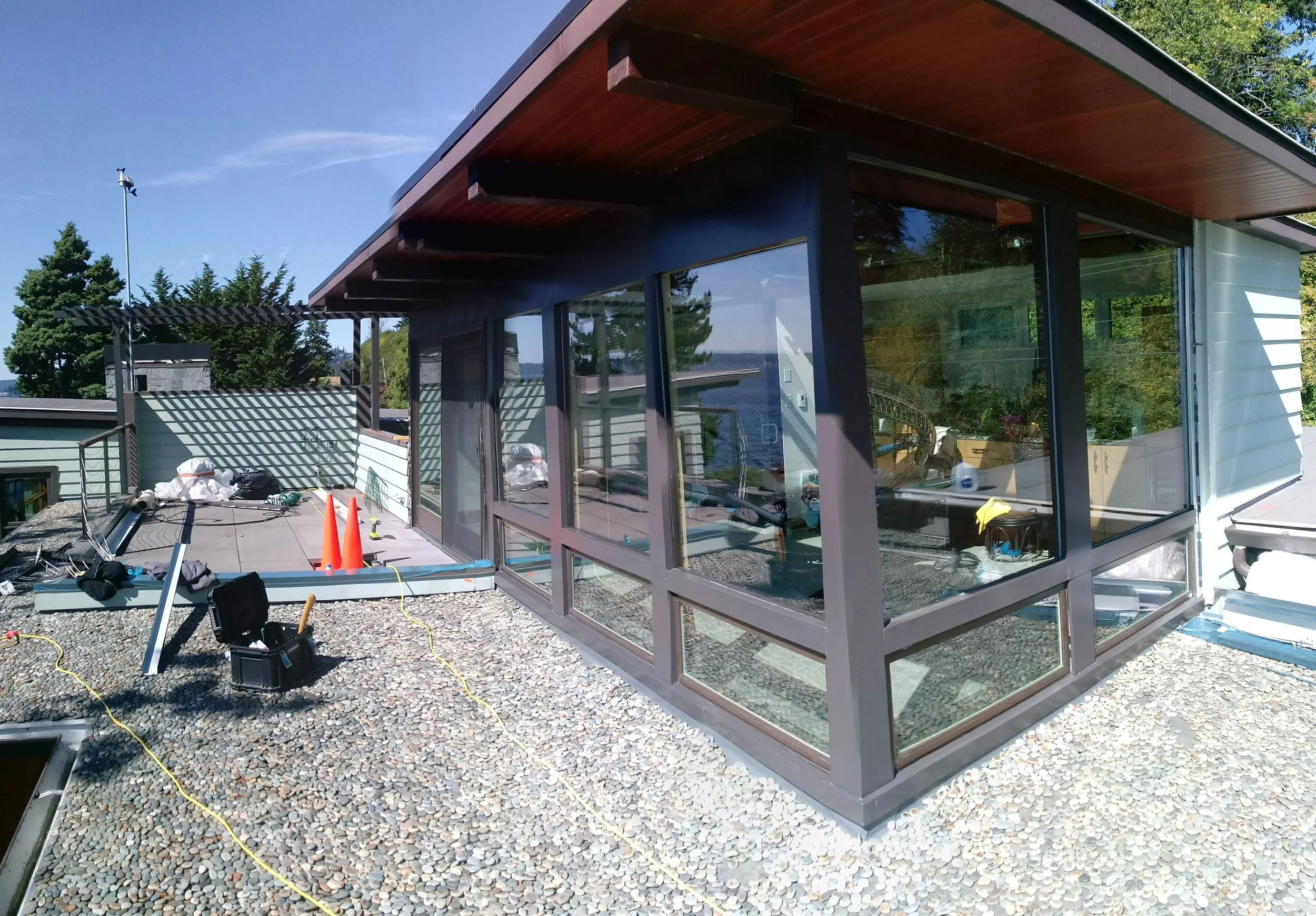 Magnolia House She Shed Chelan Roof & Siding Patio Remodel Roof Decks (Membrane Decks) Carport/ Garage Built In Gutters/ Gutter Liners Metal Siding/ Window Trim on Lake Washington Custom Scuppers W/ Debris Guard